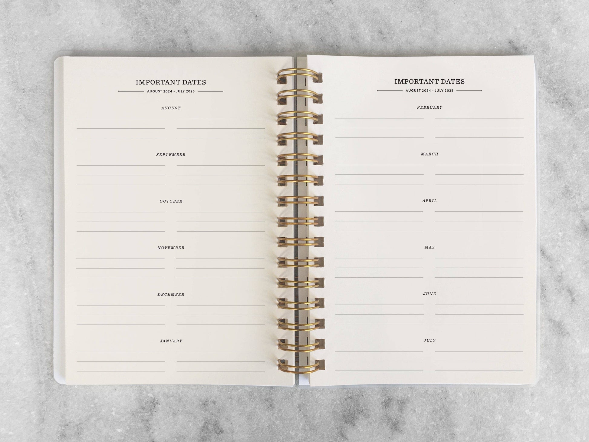 A simple, elegant 12-month planner thoughtfully made with quality papers. Perfectly sized to carry with you, tuck away in a drawer or leave bedside. Space for planning, scheduling, lists and notes printed on soft white paper.
