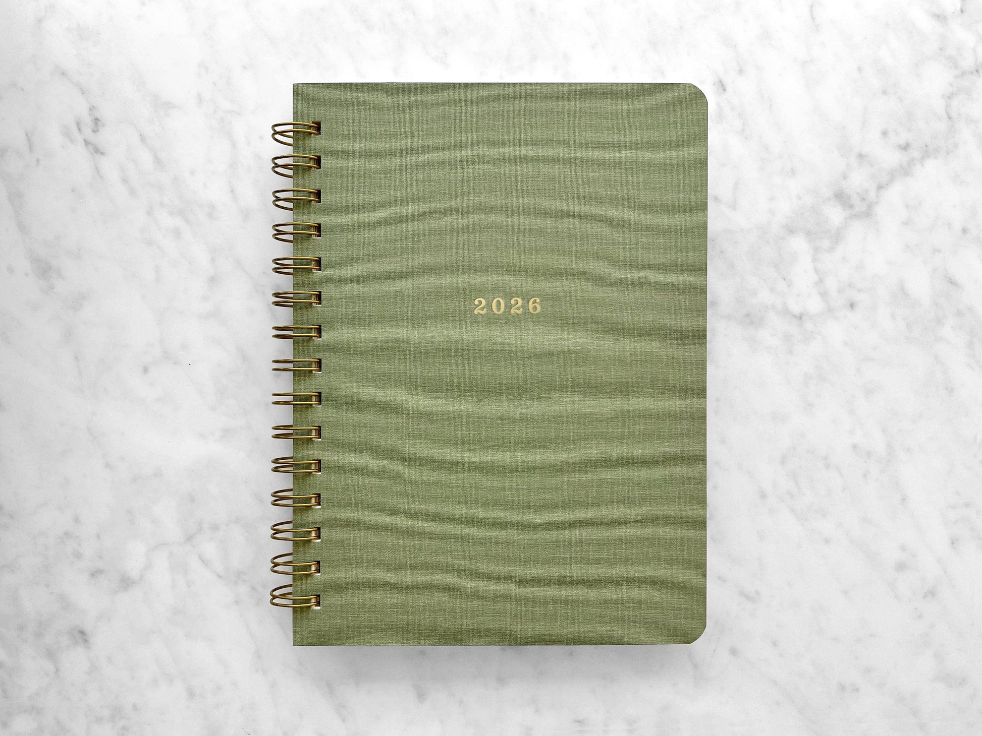 12-Month Planner, Green Bookcloth: Jan-Dec 2026