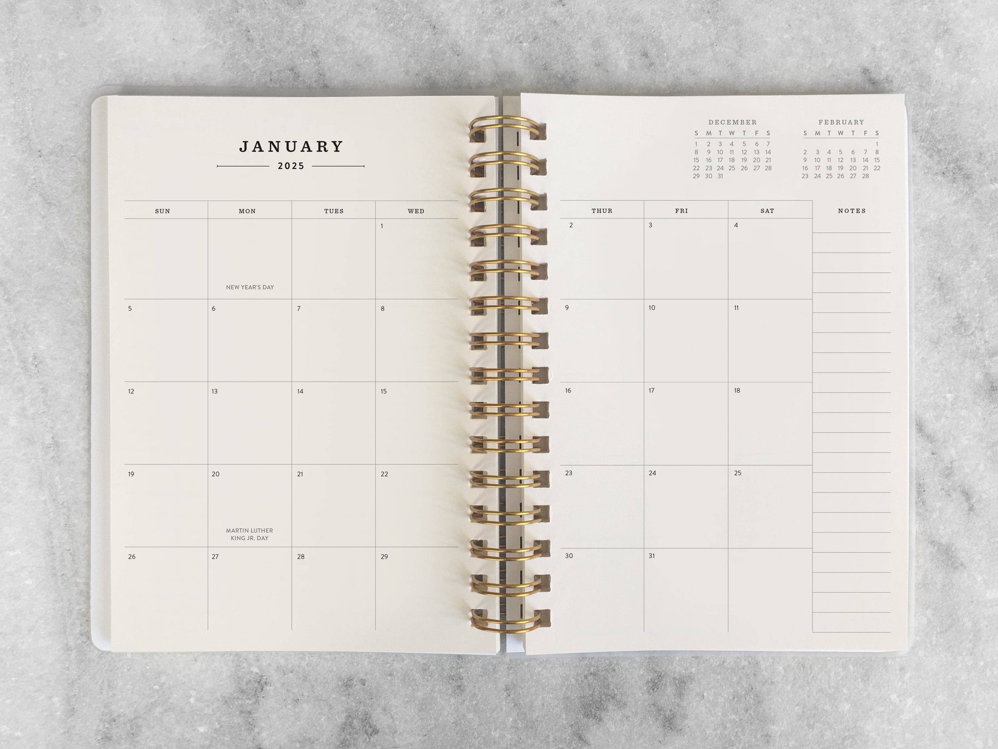 A simple, elegant 12-month planner thoughtfully made with quality papers. Perfectly sized to carry with you, tuck away in a drawer or leave bedside. Space for planning, scheduling, lists and notes printed on soft white paper.
